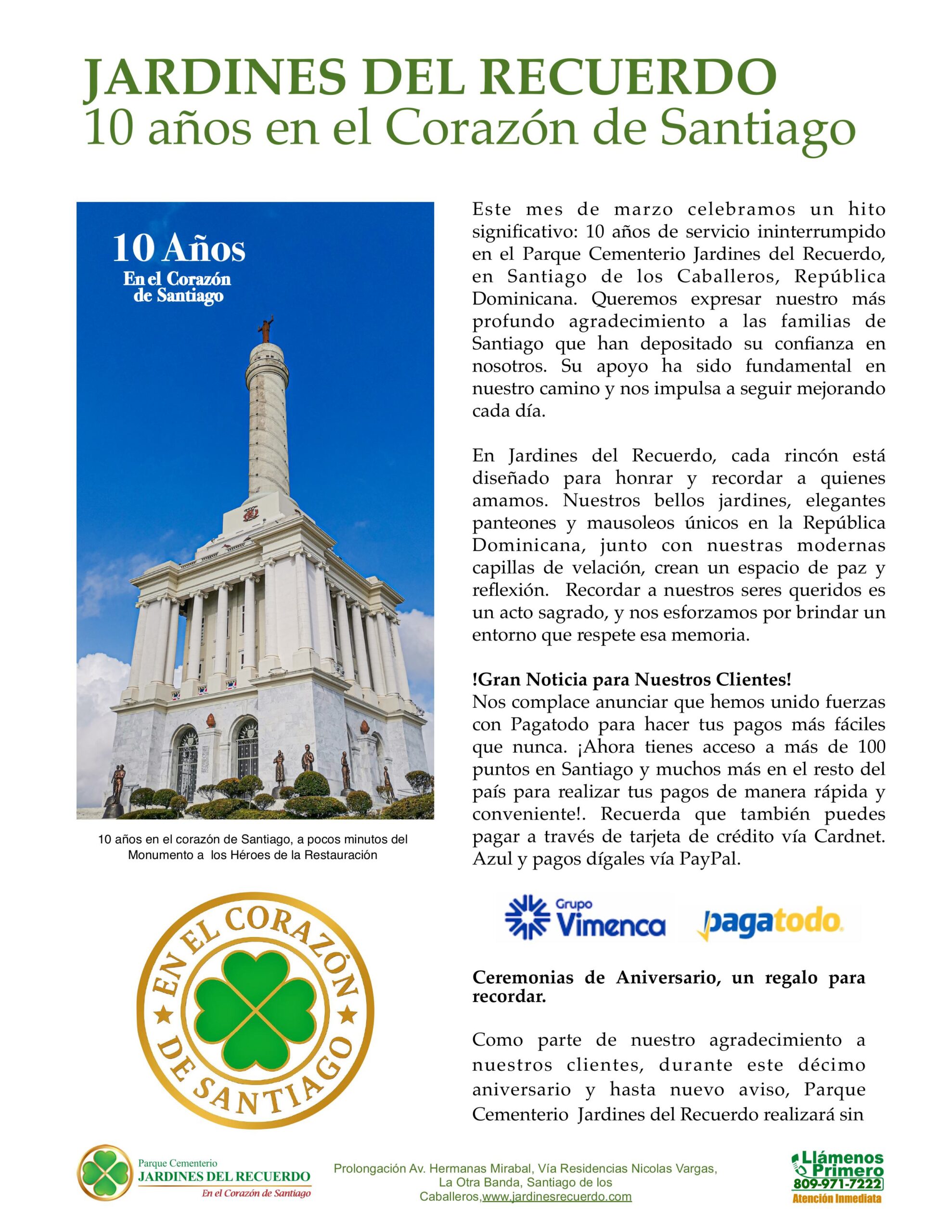 Este mes de Marzo, celebramos un hito significativo: 10 años de servicio ininterrumpido en el Parque Cementerio Jardines del Recuerdo…
